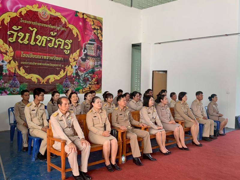 นายวชรอัษฎากร บุญภิละ ผู้อำนวยการสถานศึกษา โรงเรียนนาทรายวิทยา องค์การบริหารส่วนจังหวัดอุดรธานี ๒ คณะครู บุคลากรทางการศึกษา และนักเรียน จัดโครงการกิจกรรม วันไหว้ครู ประจำปีการศึกษา ๒๕๖๘