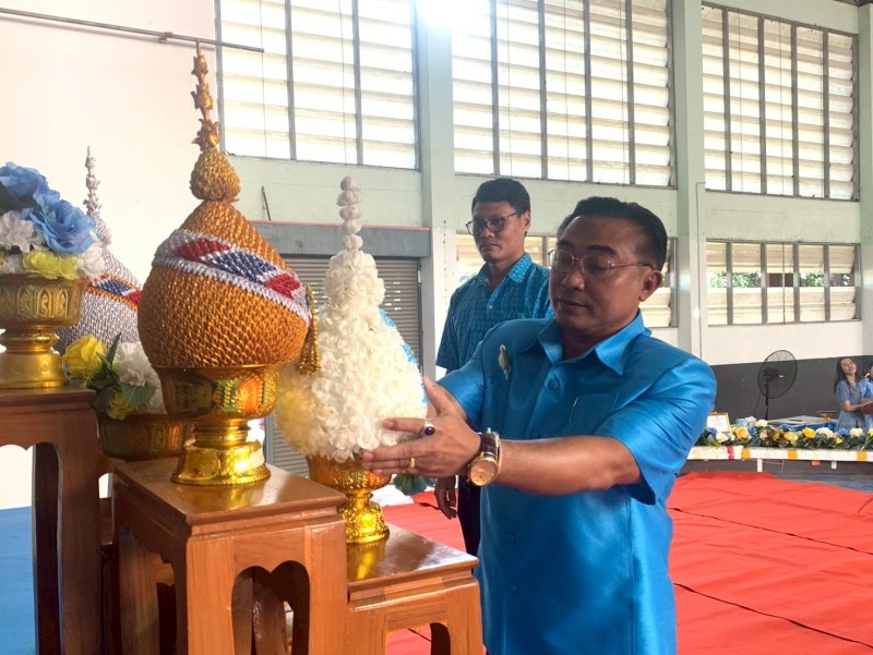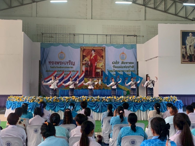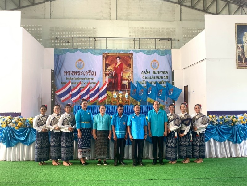 ว่าที่ร้อยตรีธานินทร์ เพ็งมีศรี รองผู้อำนวยการสถานศึกษา โรงเรียนนาทรายวิทยา องค์การบริหารส่วนจังหวัดอุดรธานี ๒ คณะครู และบุคลากรทางการศึกษา นักเรียน จัดกิจกรรม วันเฉลิมพระชนมพรรษาสมเด็จพระนางเจ้าสิริกิติ์ พระบรมราชินีนาถ พระบรมราชชนนีพันปีหลวง