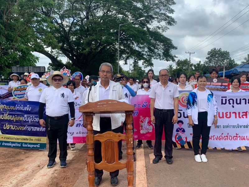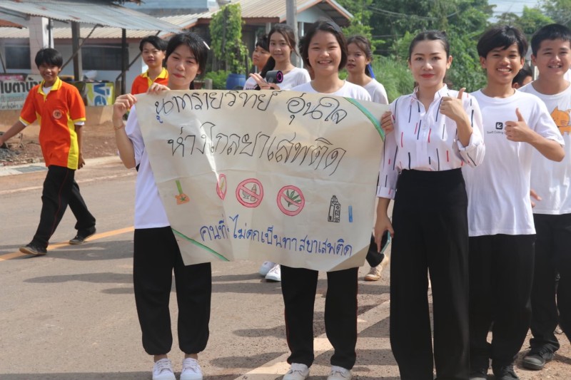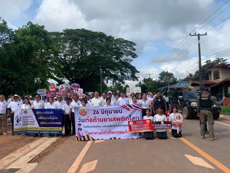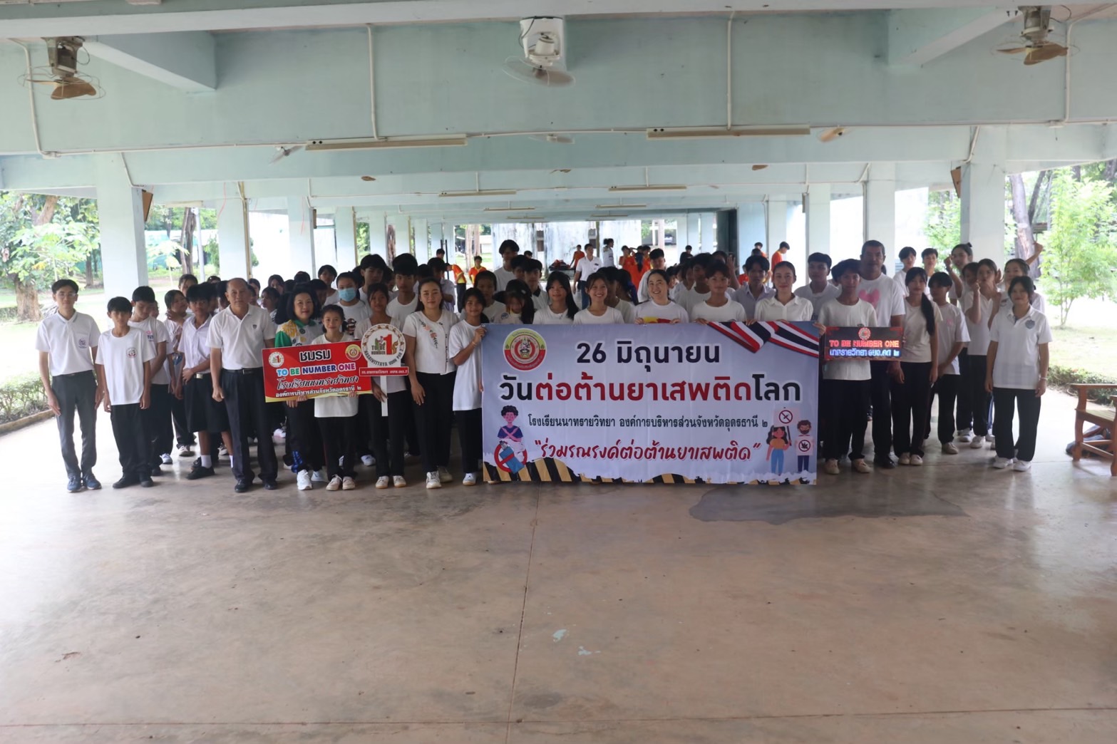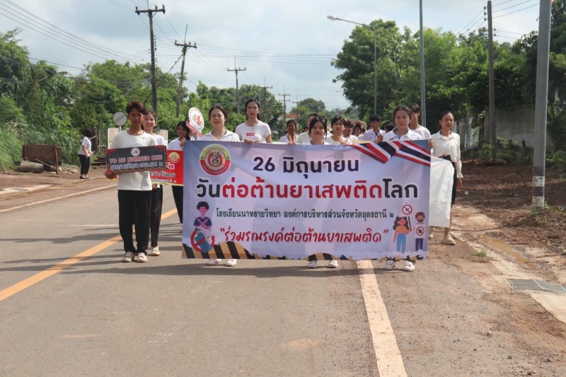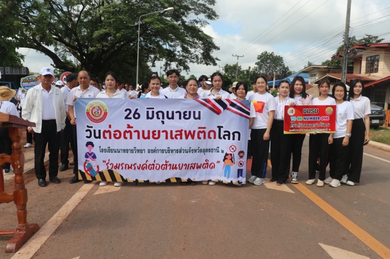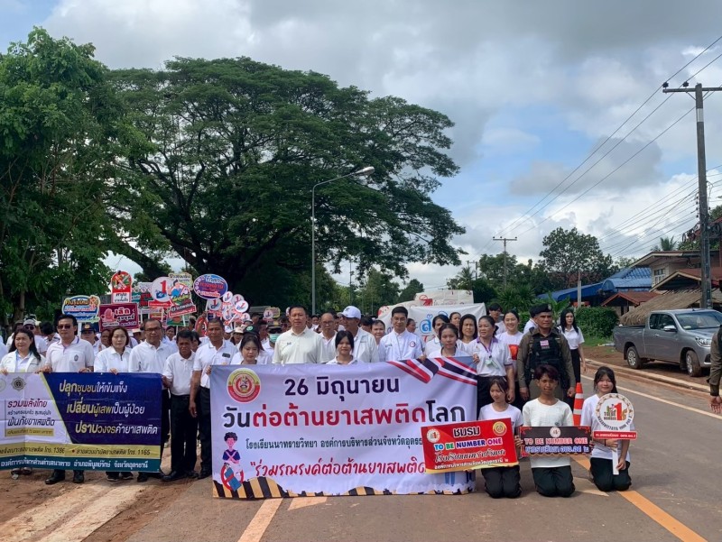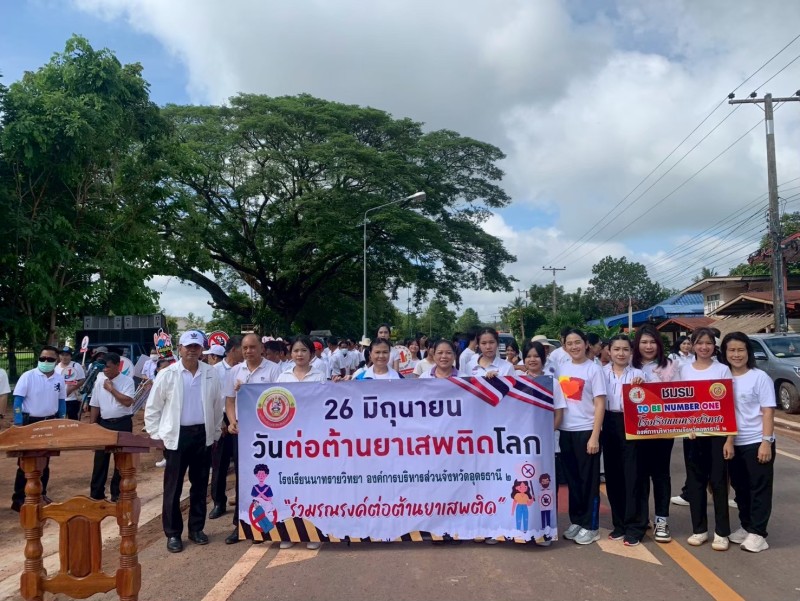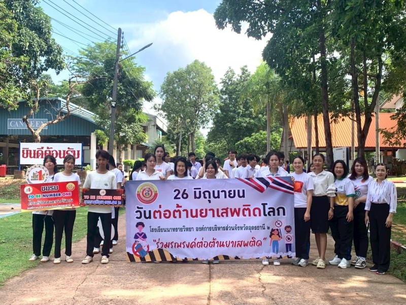 คณะครู และบุคลากรทางการศึกษา นักเรียน โรงเรียนนาทรายวิทยา องคืการบริหารส่วนจังหวัดอุดรธานี ๒ เข้าร่วมกิจกรรม วันต่อต้านยาเสพติดโลก