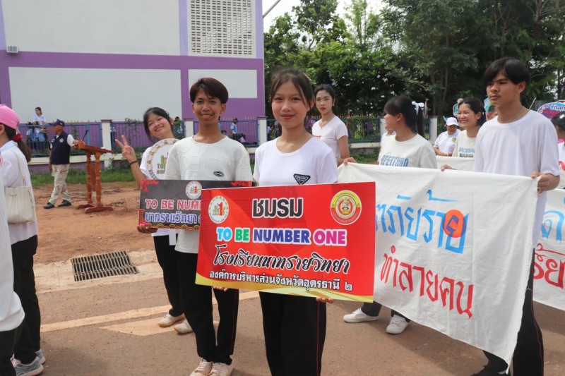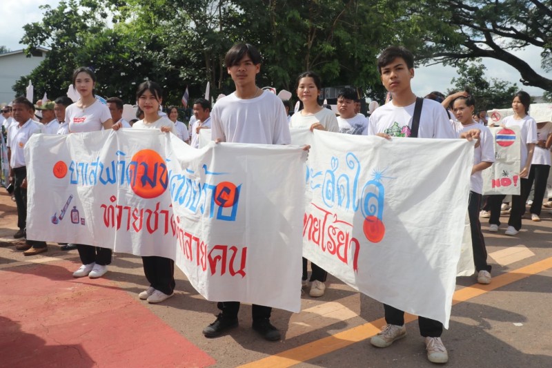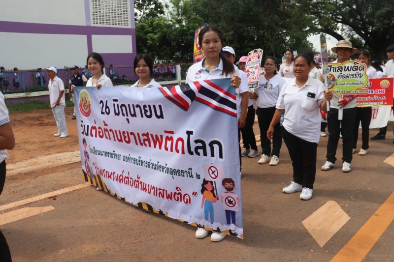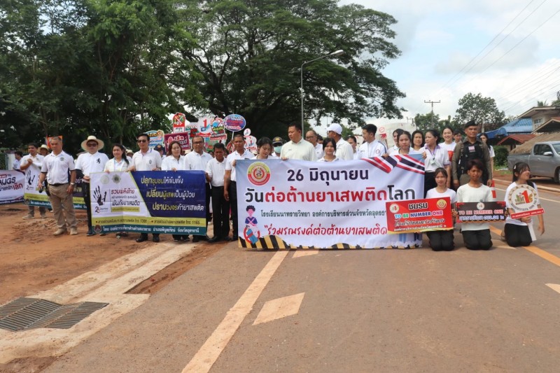 คณะครู และบุคลากรทางการศึกษา นักเรียน โรงเรียนนาทรายวิทยา องคืการบริหารส่วนจังหวัดอุดรธานี ๒ เข้าร่วมกิจกรรม วันต่อต้านยาเสพติดโลก