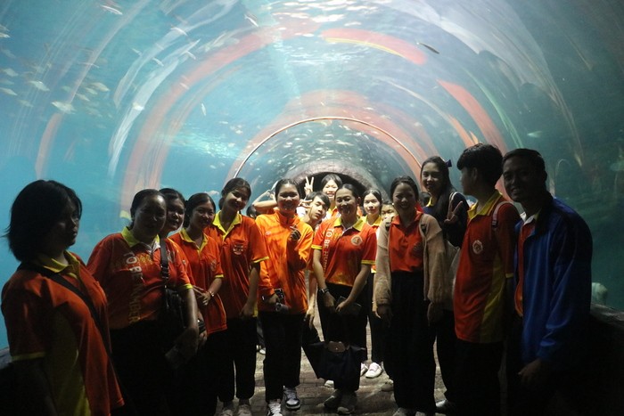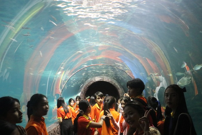 นายวชรอัษฎากร บุญภิละ ผู้อำนวยการสถานศึกษา โรงเรียนนาทรายวิทยา องค์การบริหารส่วนจังหวัดอุดรธานี ๒ คณะครู บุคลากรทางการศึกษา และนักเรียน จัดโครงการกิจกรรมพัฒนาผู้เรียน ทัศนศึกษา พิพิธภัณฑ์สัตว์น้ำจังหวัดหนองคาย