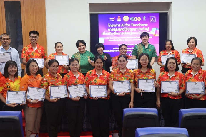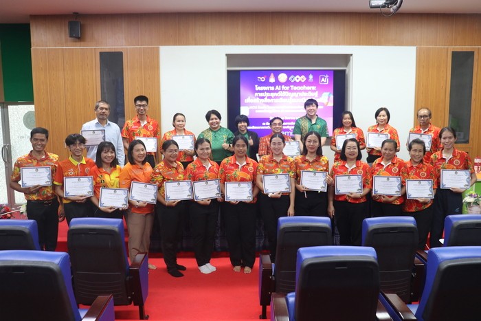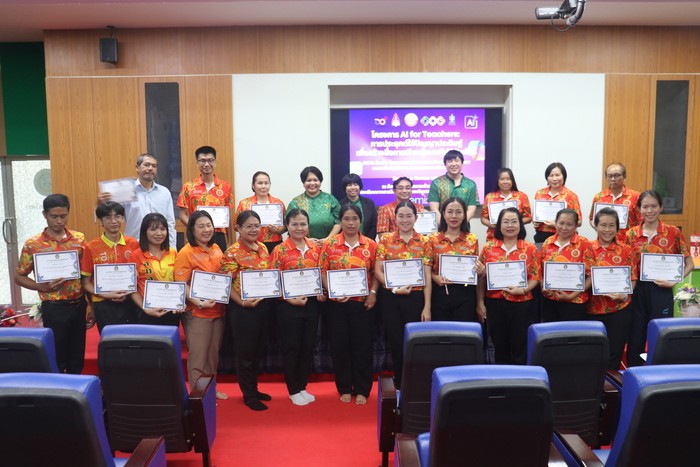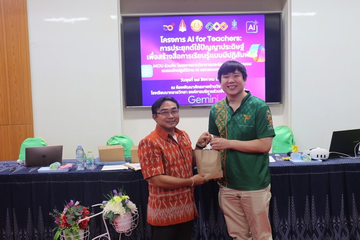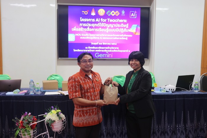 ว่าที่ร้อยตรีธานินทร์ เพ็งมีศรี รองผู้อำนวยการสถานศึกษา โรงเรียนนาทรายวิทยา องค์การบริหารส่วนจังหวัดอุดรธานี ๒ คณะครู และบุคลากรทางการศึกษา เข้าร่วมโครงการ AI for Teachers: การประยุกต์ใช้ปัญญาประดิษฐ์เพื่อสร้างสื่อการเรียนรู้แบบมีปฏิสัมพันธ์