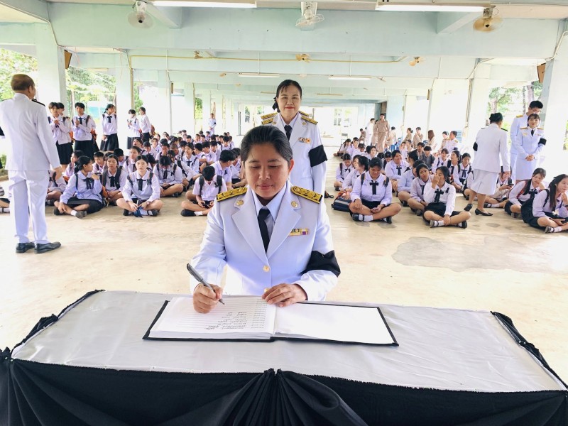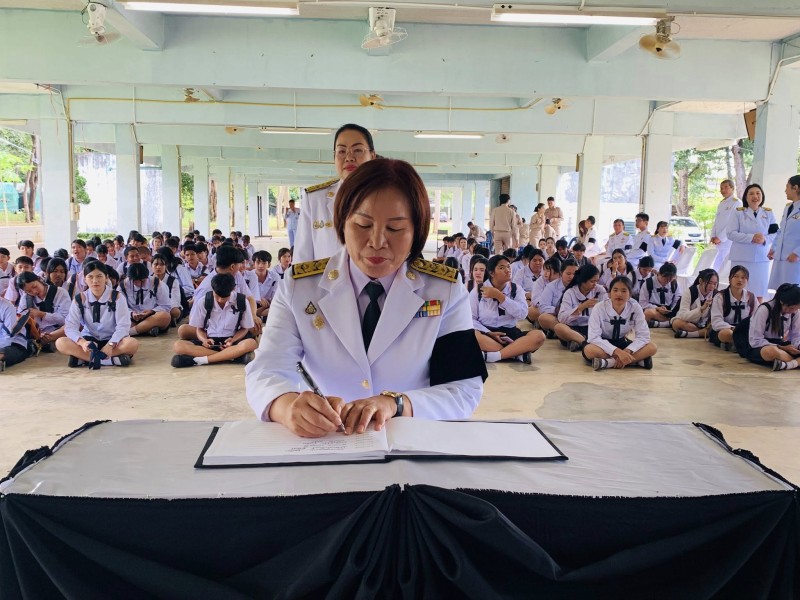 นายวชรอัษฎากร บุญภิละ ผู้อำนวยการสถานศึกษา โรงเรียนนาทรายวิทยา อบจ.อุดรธานี ๒ คณะครู บุคลากรทางการศึกษา และนักเรียน จัดพิธีน้อมรำลึกในพระมหากรุณาธิคุณและร่วมถวายความอาลัยแด่สมเด็จพระนางเจ้าสิริกิติ์ พระบรมราชินีนาถ พระบรมราชชนนีพันปีหลวง