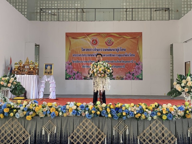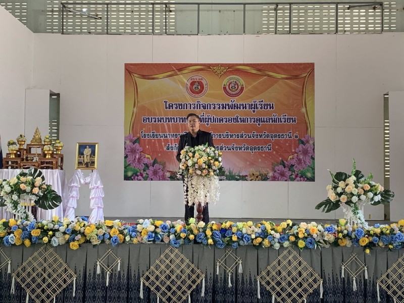 นายวชรอัษฎากร บุญภิละ ผู้อำนวยการสถานศึกษา โรงเรียนนาทรายวิทยา อบจ.อุดรธานี ๒ คณะครู บุคลากรทางการศึกษา และนักเรียน จัดโครงการพัฒนาผู้เรียน อบรมบทบาทหน้าที่ผู้ปกครองในการดูแลนักเรียน