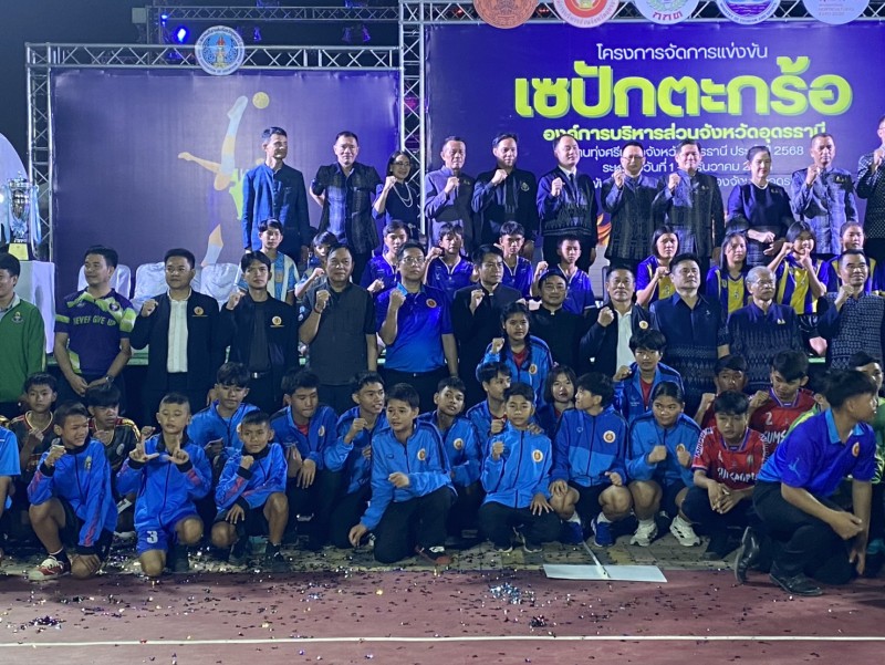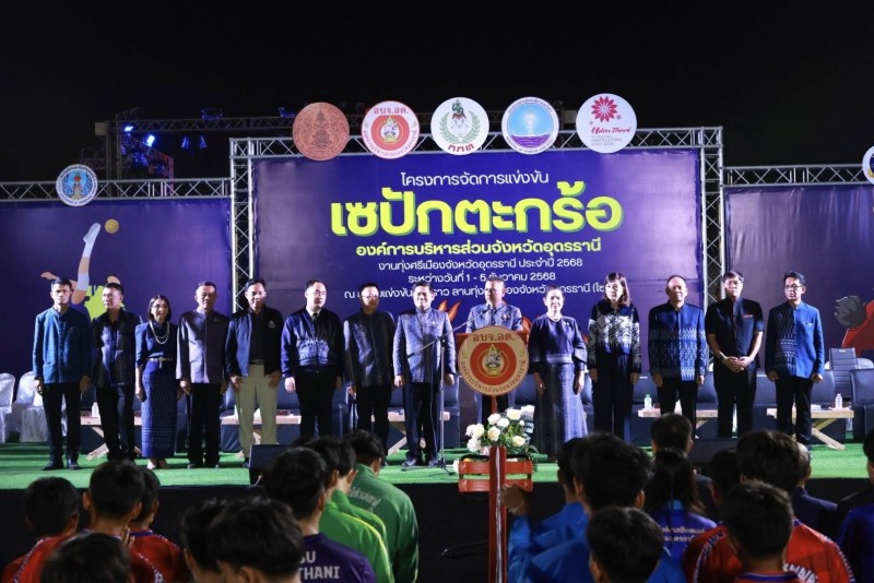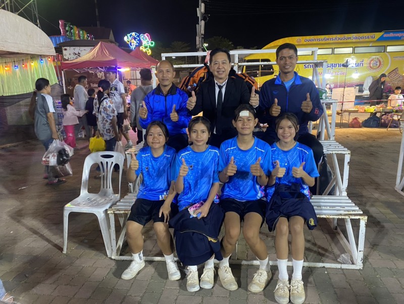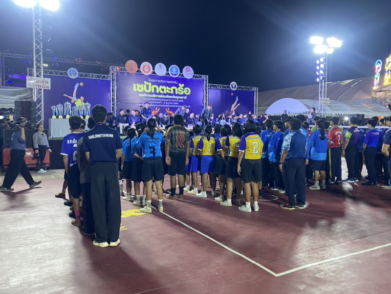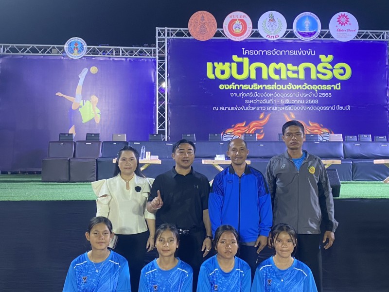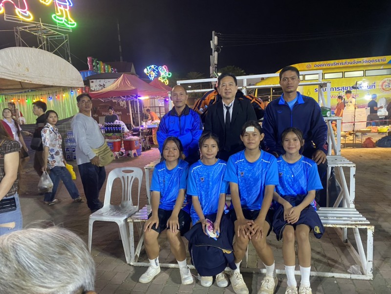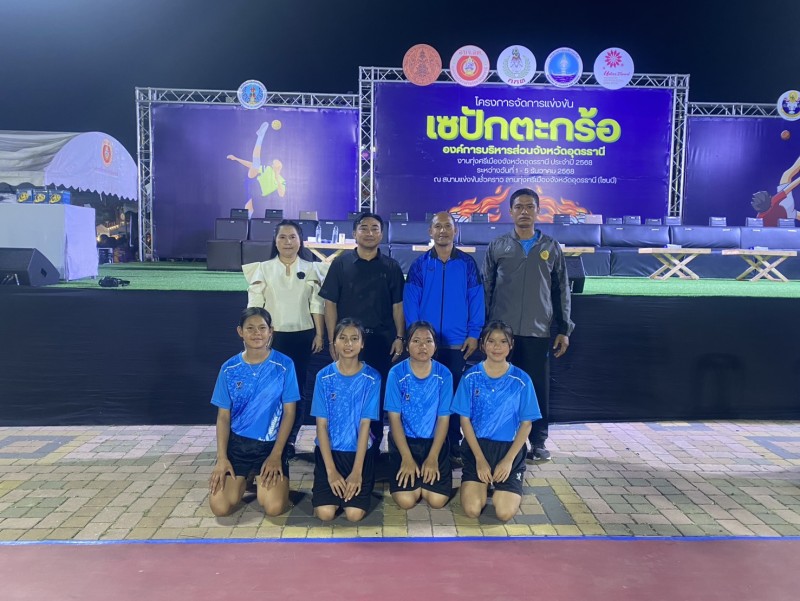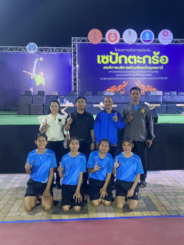 คณะครู บุคลากรทางการศึกษา โรงเรียนนาทรายวิทยา องค์การบริหารส่วนจังหวัดอุดรธานี ๒ นำนักเรียนเข้าร่วมการ แข่งขันเซปักตะกร้อหญิง รุ่นอายุไม่เกิน 15 ปี ในงานประจำปีทุ่งศรีเมือง จังหวัดอุดรธานี ประจำปี 2568