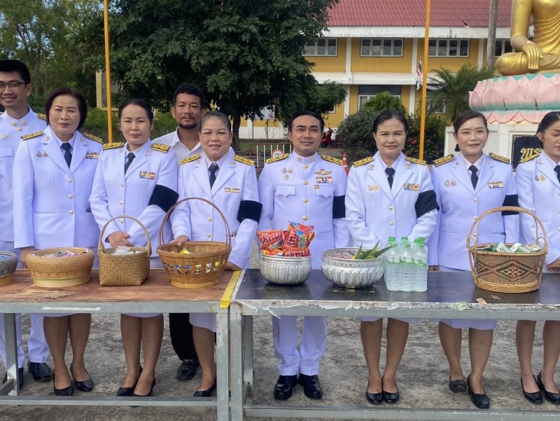 ว่าที่ร้อยตรีธานินทร์ เพ็งมีศรี รองผู้อำนวยการสถานศึกษา โรงเรียนนาทรายวิทยา องค์การบริหารส่วนจังหวัดอุดรธานี ๒ คณะครู ที่ว่าการอำเภอพิบูลย์รักษ์ จัดกิจกรรม เนื่องในวันคล้ายวันพระบรมราชสมภพ พระบาทสมเด็จพระบรมชนกาธิเบศร มหาภูมิพลอดุลยเดชมหาราช บรมนาถบพิตร