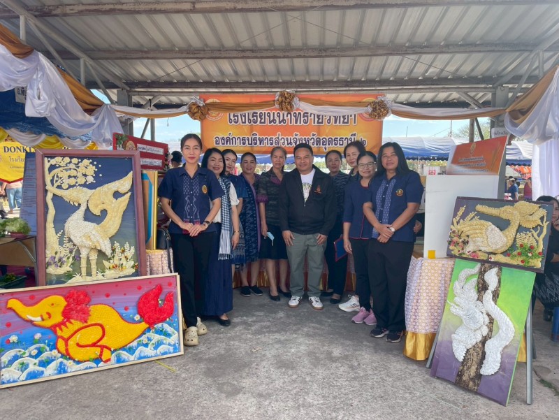 ว่าที่ร้อยตรีธานินทร์ เพ็งมีศรี รองผู้อำนวยการสถานศึกษา โรงเรียนนาทรายวิทยา องค์การบริหารส่วนจังหวัดอุดรธานี ๒ คณะครู บุคลากรทางการศึกษา และนักเรียน เข้าร่วมขบวนแห่ งานประเพณีโคมลมลอยฟ้าผ้ามัดหมี่ย้อมคราม ประจำปี 2568