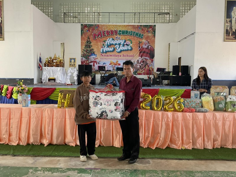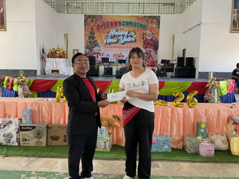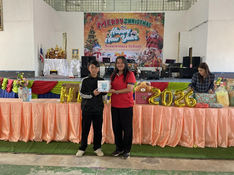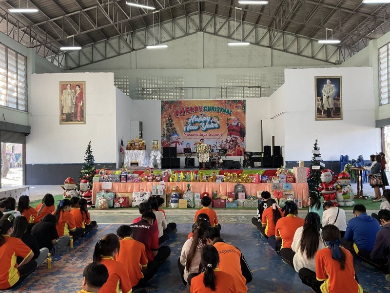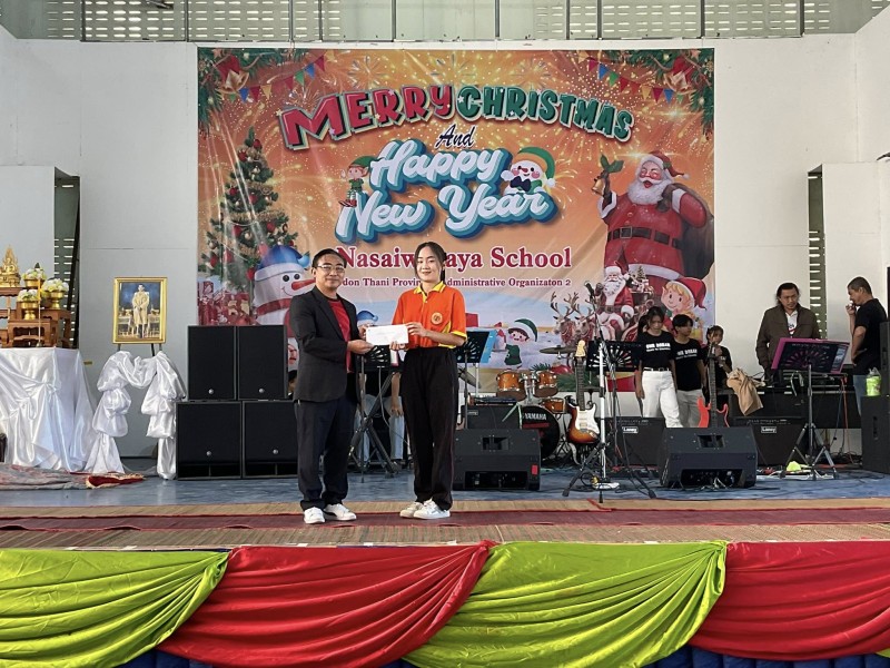 ว่าที่ร้อยตรีธานินทร์ เพ็งมีศรี รองผู้อำนวยการสถานศึกษา โรงเรียนนาทรายวิทยา อบจ.อุดรธานี ๒ คณะครู บุคลากรทางการศึกษา และนักเรียน จัดกิจกรรมวันคริสมาส และวันส่งท้ายปีเก่าต้อนรับปีใหม่ ประจำปี 2568