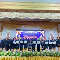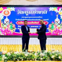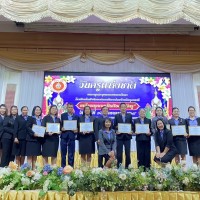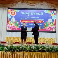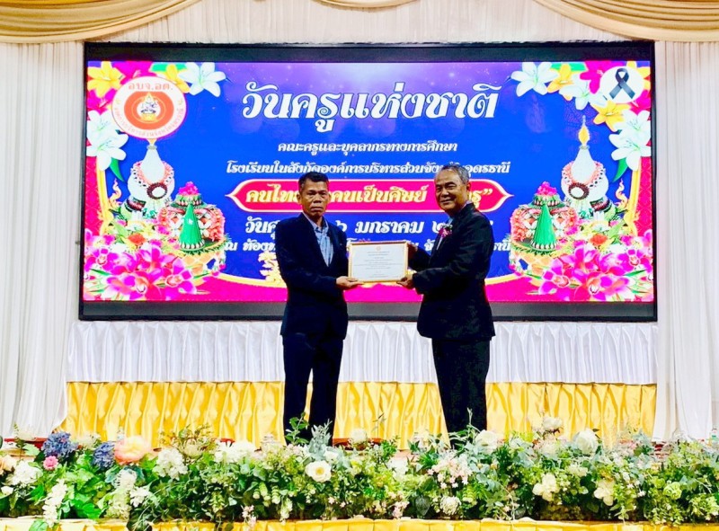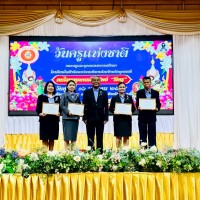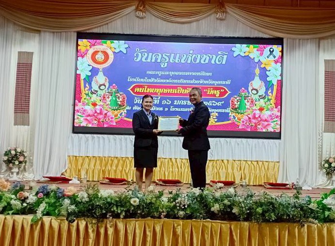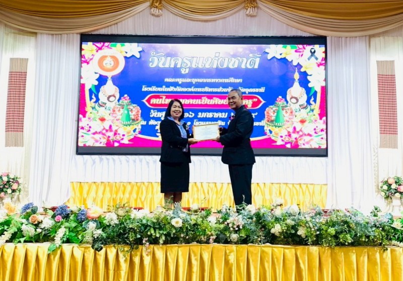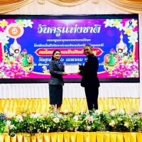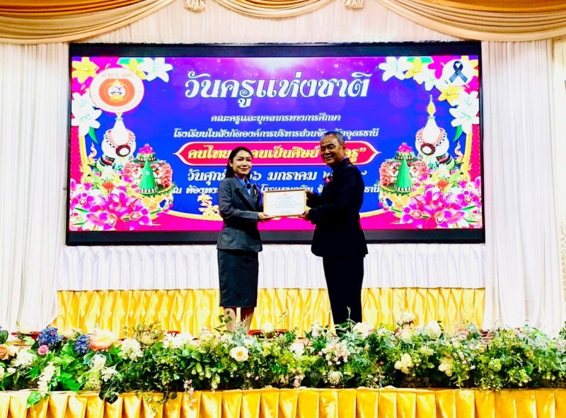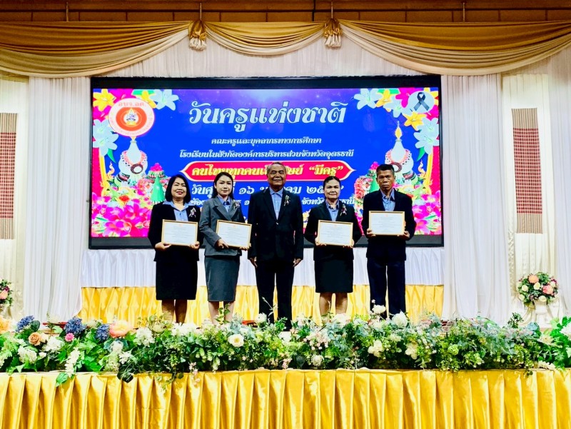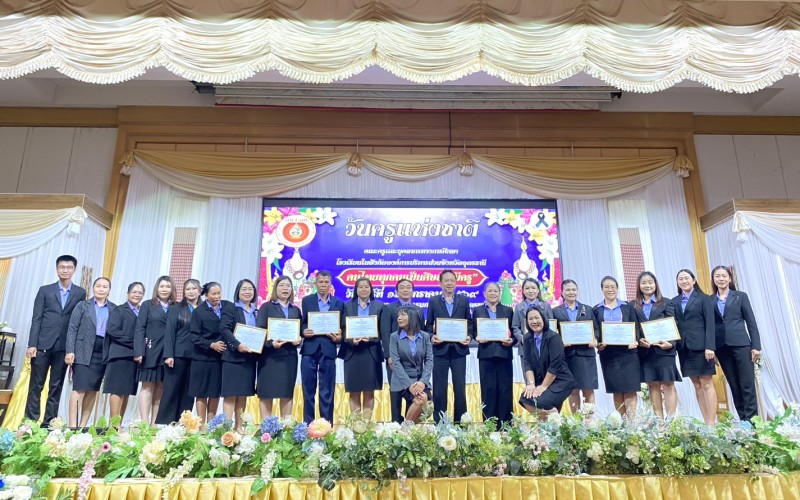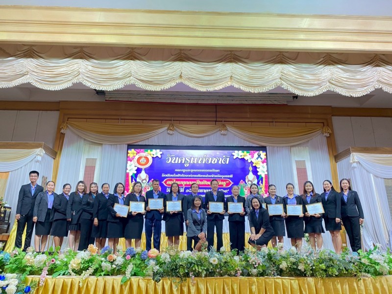 นายวชรอัษฎากร บุญภิละ ผู้อำนวยการสถานศึกษา โรงเรียนนาทรายวิทยา อบจ.อุดรธานี ๒ คณะครู บุคลากรทางการศึกษา พิธีระลึกถึงพระคุณบูรพาจารย์ พิธีมอบรางวัลประกาศเกียรติคุณผู้ประกอบวิชาชีพทางการศึกษา เนื่องในวันครู ประจำปี 2569 ณ โรงแรมการิน อุดรธานี