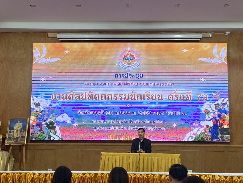 นายวชรอัษฎากร บุญภิละ ผู้อำนวยการสถานศึกษา โรงเรียนนาทรายวิทยา อบจ.อุดรธานี ๒ คณะครู และบุคลากรทางการศึกษา เข้าร่วมการประชุม คณะกรรมการตัดสินกิจกรรมการแข่งขัน งานศิลปหัตถกรรมนักเรียน ครั้งที่ 73 ณ หอประชุมโรงเรียนบ้านดุงวิทยา